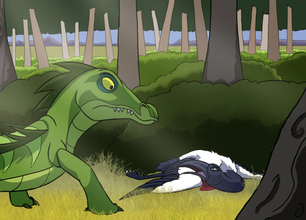 She crash-lands unto Makuu, who was casually trying to find an apology gift for his mate Akina for avoiding the topic of eggs. She is initially afraid he will eat her, but he assures her he has already eaten, and is not hungry. He notices her condition, but before he can go get help, Hasnaa calls him, saying she'll try to lay her egg with whatever strength she has left, and asks that he make three promises: